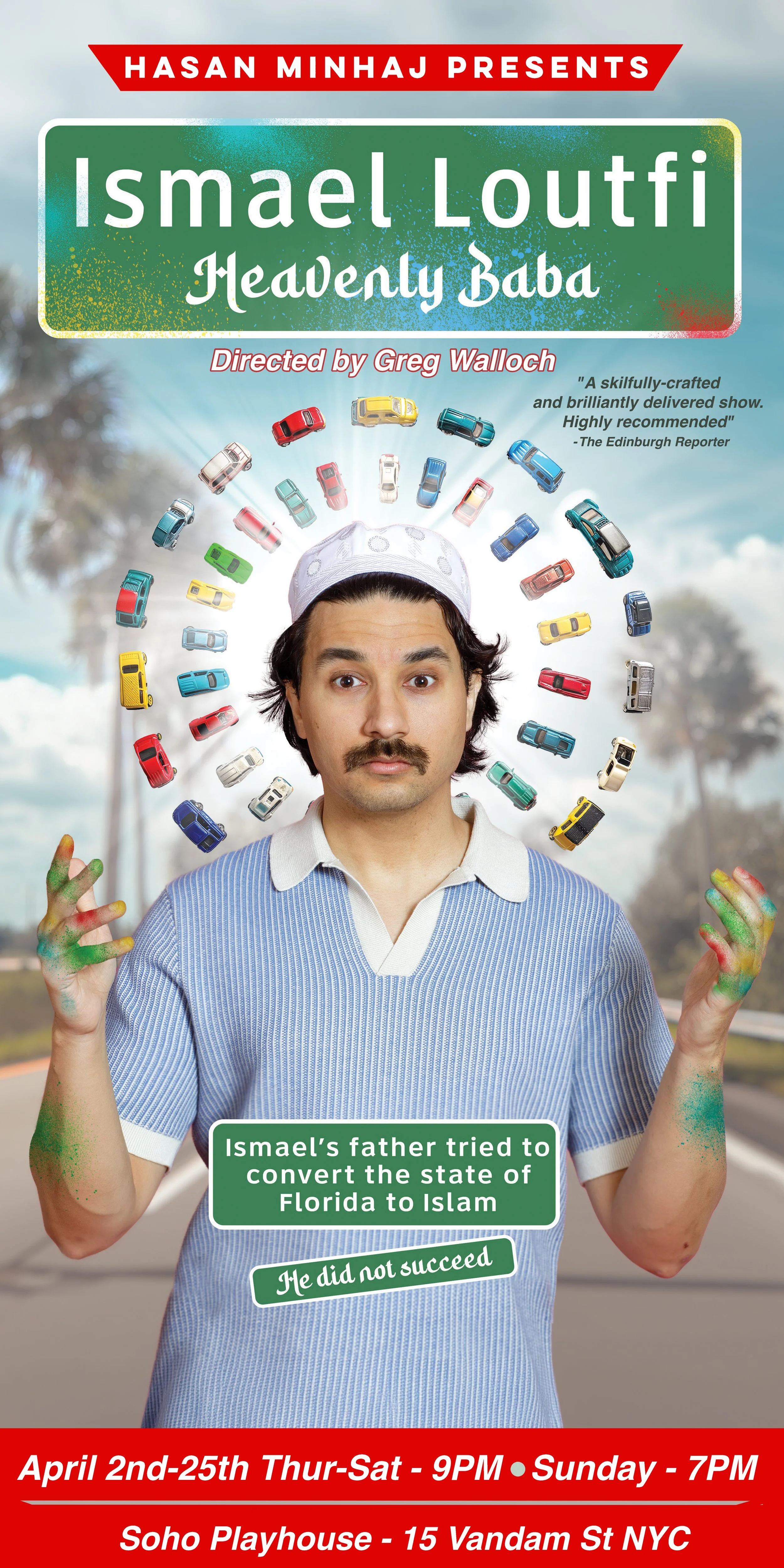 Both hilarious and deeply human, Heavenly Baba leaves audiences exhilarated — and unexpectedly moved. After three years of building the show, along with a highly successful run at Edinburgh's Fringe Fest, Ismael is excited to present Heavenly Baba Off Broadway, seeing it as a culmination of a lifetime of searching for an outlet, a connection, a way to speak as that strange little Muslim boy whose father drove a car with the words “ISLAM ALWAYS DOT COM” painted on the back windshield for every redblooded American to see.
