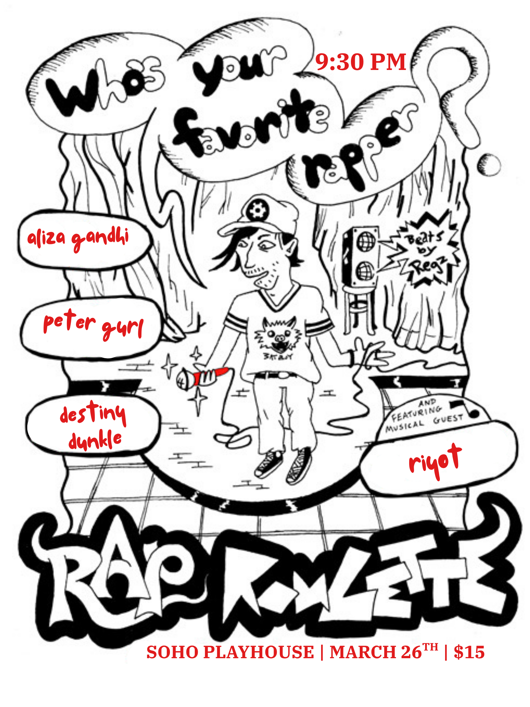 Fans of hip hop and standup comedy look no further! Rap Roulette: A Comedy Show of Raptastical Proportions is a show that blends performances from New York City’s dopest up-and-coming young rappers and funniest underground comics. Not only do the performers dazzle and delight with their own crafts, but will get the chance to dabble in each other’s. Comedians will rap! Rappers will attempt standup comedy! Catch it at Rap Roulette.